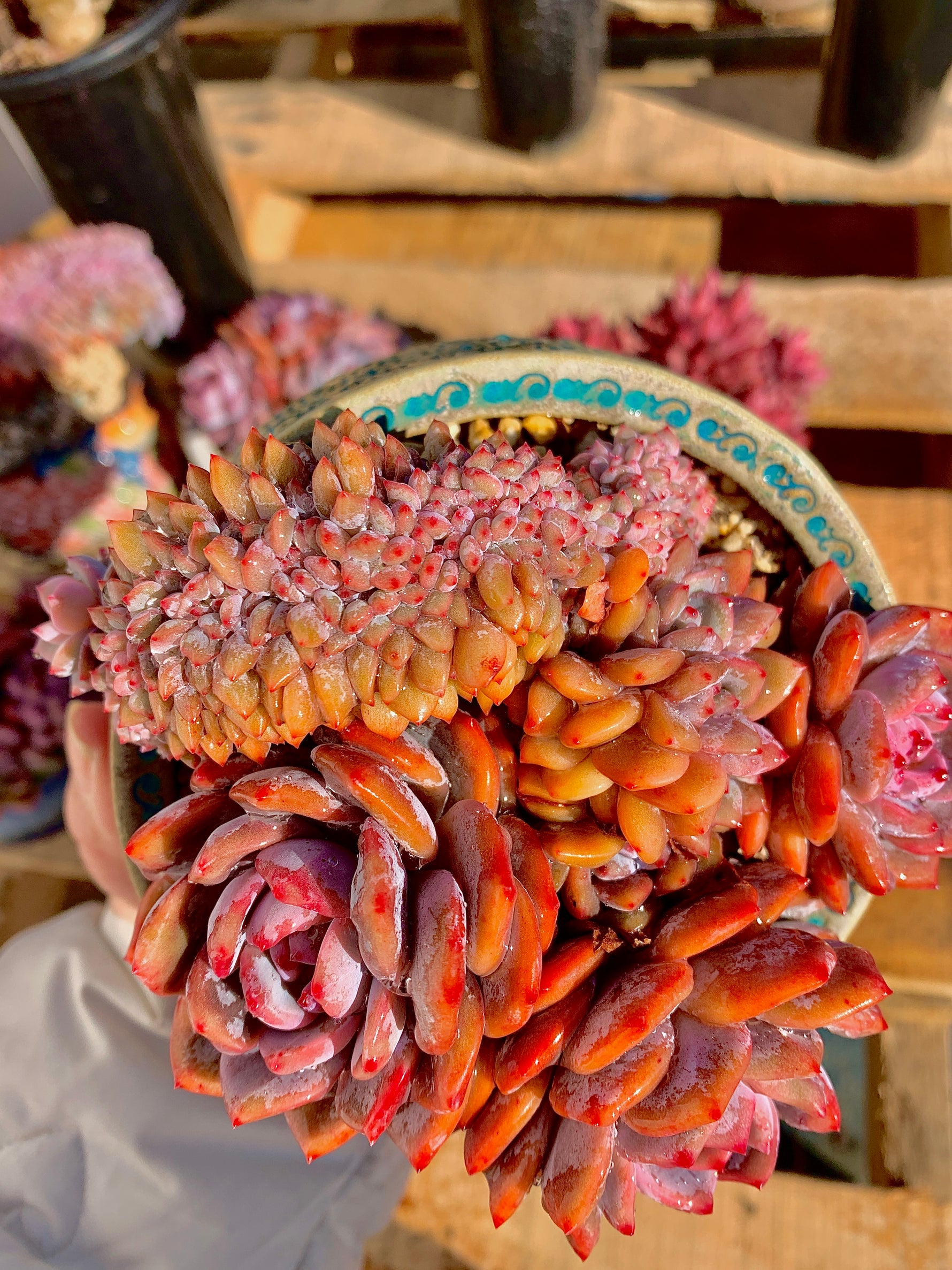 Please note: Each plant is unique and may vary slightly in appearance from the image shown. Embrace the charm of the Echeveria Orange Monroe Cluster and experience the joy of owning a low-maintenance yet beautiful succulent.