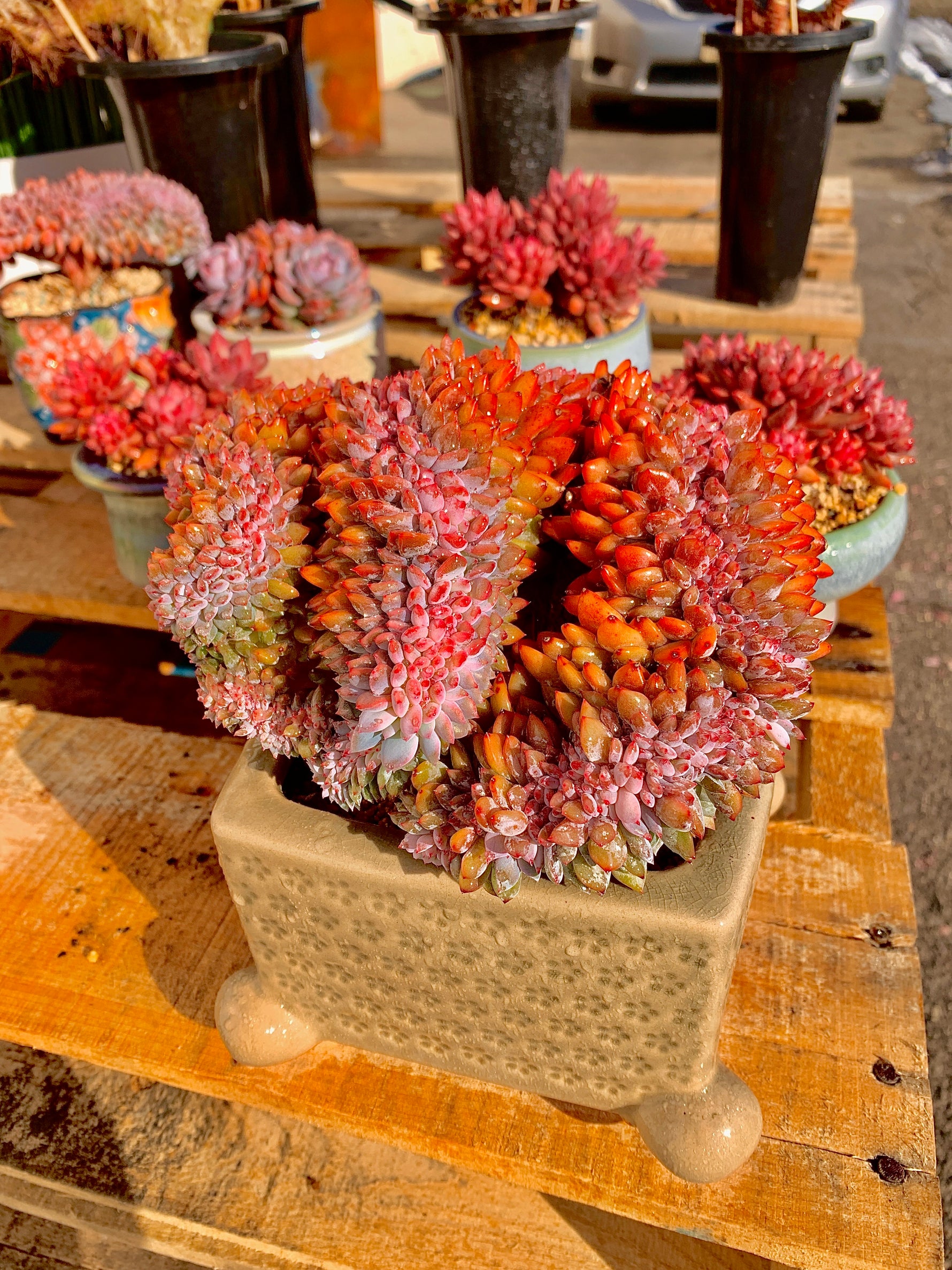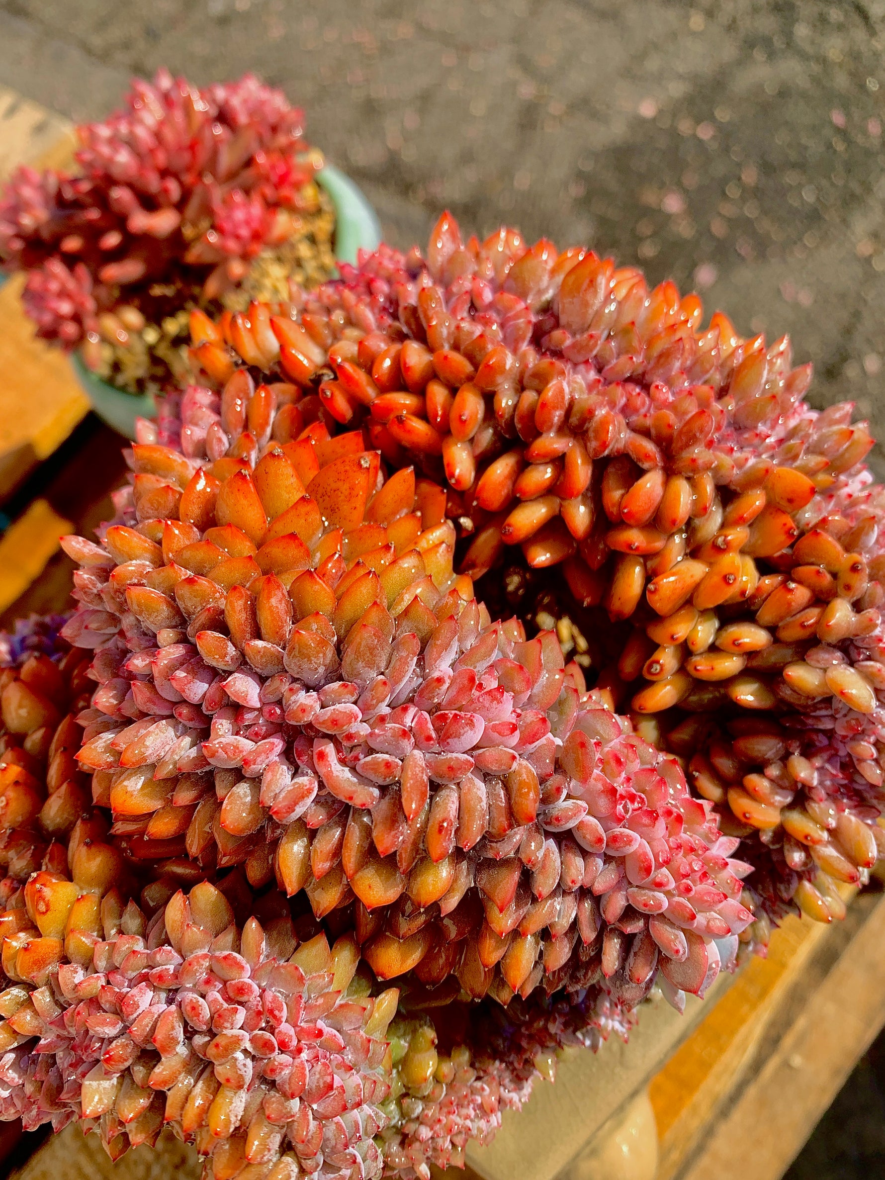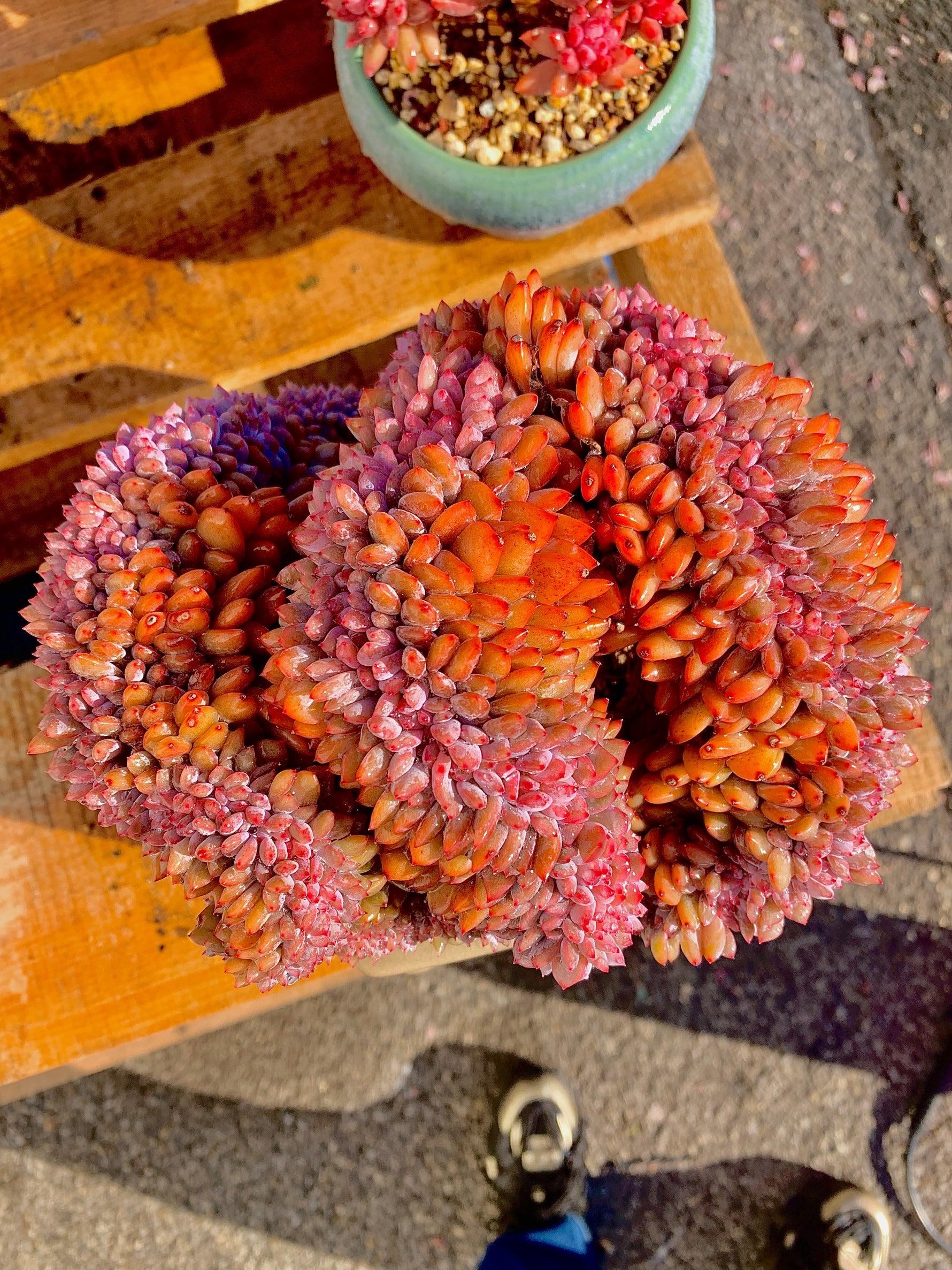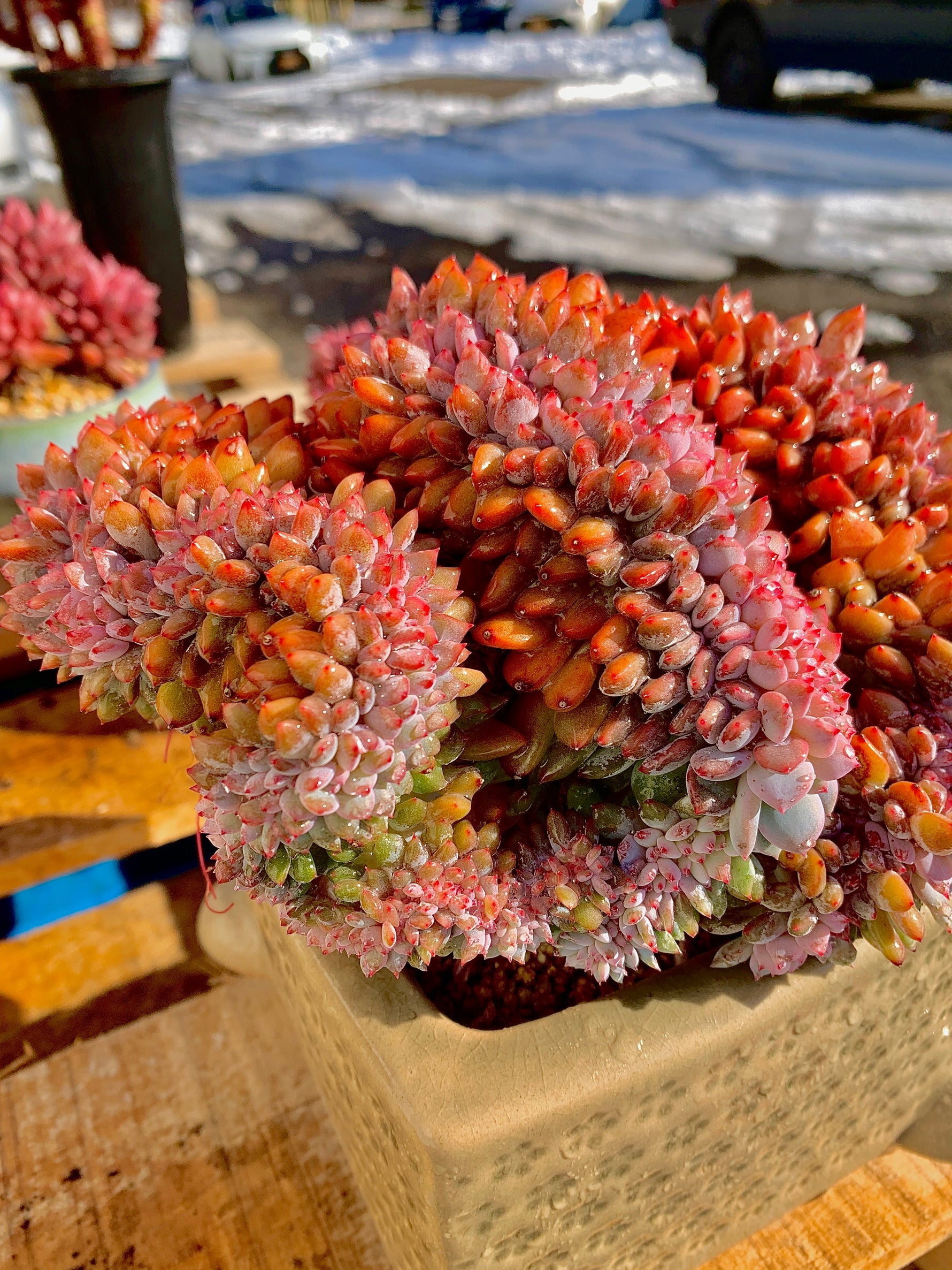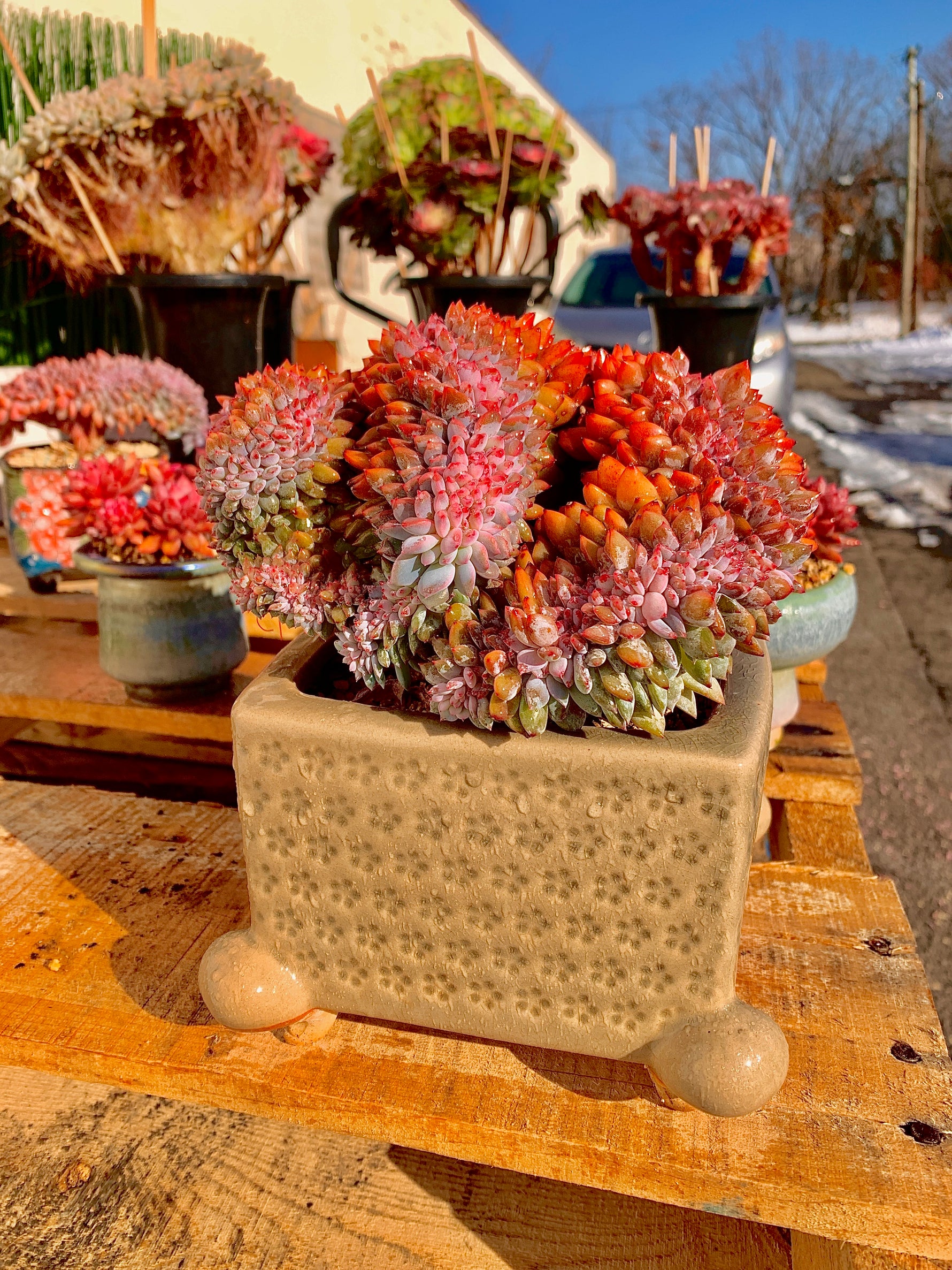 Introducing the Echeveria Orange Monroe Cluster, an alluring succulent plant that will add a pop of color to any space. With its three rosettes showcasing a vibrant pinkish-red color, this plant is sure to catch your eye.