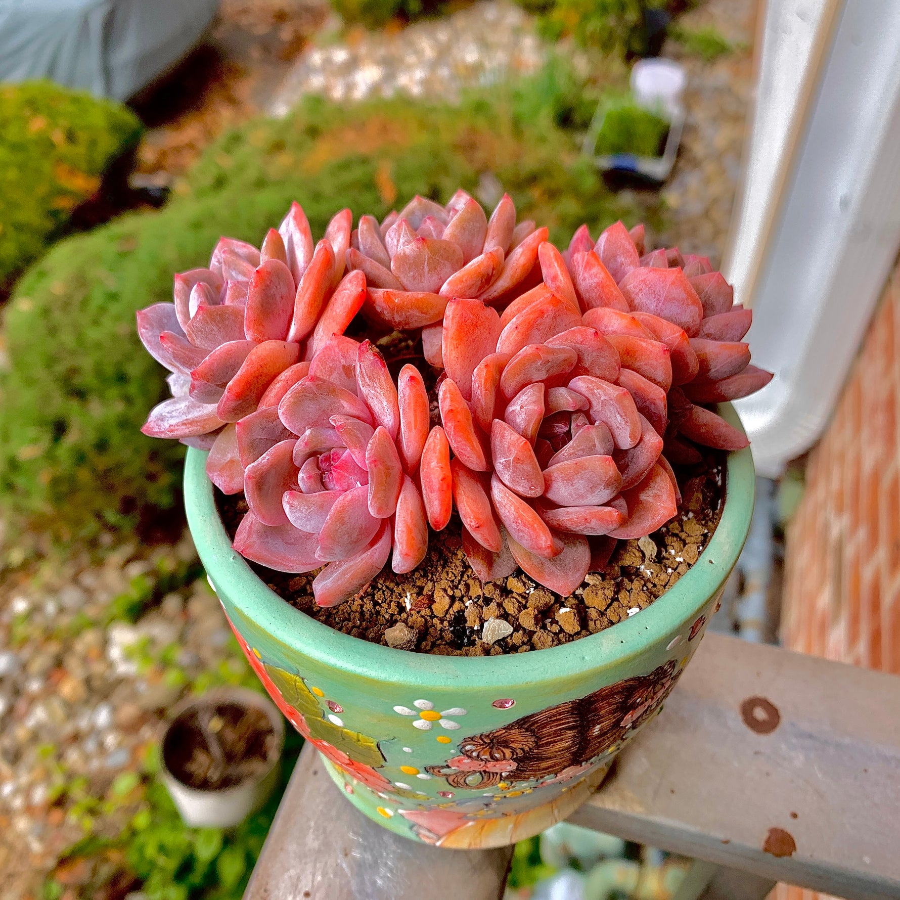 The Echeveria Orange Monroe 3 Heads comes with three rosettes, each exhibiting a lovely pinkish-red color and a compact growth habit. This plant is easy to care for and ideal for beginners or experienced gardeners alike. When you purchase this plant, you'll receive only the main root system without the pot or decorative elements seen in the photo. Choose your own container to match your personal style and create a customized look for your home or office.